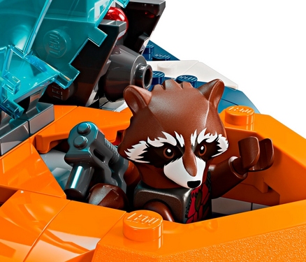 Соберите боевую птицу Ракеты с открывающейся кабиной, двумя пусковыми установками и бластерами. В набор входят минифигурки Ракеты и Ронана. Поместите Ракету за штурвал, запустите ракеты и откройте огонь из бластеров!