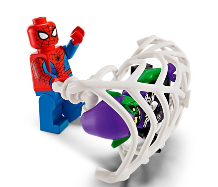 В комплекте вы найдете минифигурки Человека-паука, Призрака-Паука и Веномизированного Зеленого Гоблина, а также разнообразное оружие и аксессуары. Открывающаяся кабина машины, тыквенная бомба и гибкая паутина добавят реалистичности игре.